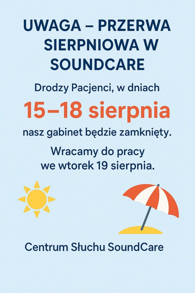 📢 UWAGA – przerwa sierpniowa w SoundCare 📢
